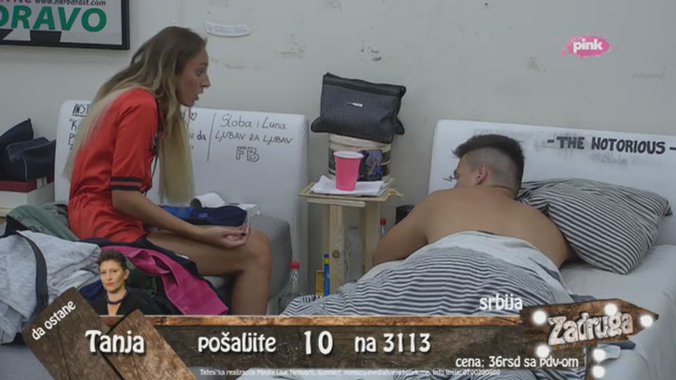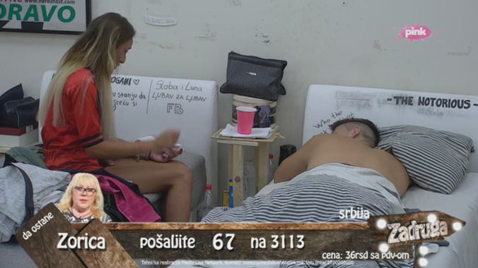 Sloba je zamerio blogerki i zbog toga što je cimeri povezuju sa Nemanjom Đerićem Đeksonom, sa kojim će ove nedelje ona deliti i izolaciju. Pevač je prebacio Luni i što spominje bivšeg dečka, Srđana za kog veruje da će je čekati kada izađe iz rijalitija.
