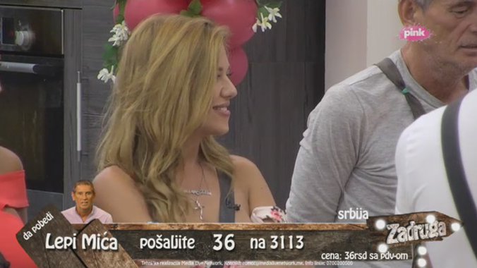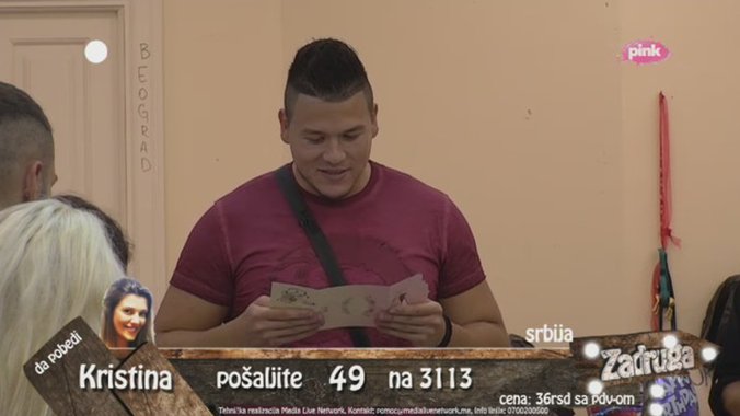 Luna Đogani je kroz suze samo rekla: "Da li je moguće, cela moja porodica?", a Sloba je zatim nastavio sa čitanjem čestitki. Slobi su pisale i majka i sestra. Majka je Radanoviću poručila da ga čeka u finalu i poželela mu zdravlje, dok je Slobina sestra Maja rekla kako je najponosnija što je njegova sestra i pozdravila Lunu. Sloba je pred čitanje sestrinog pisma rekao da ima veliku tremu.