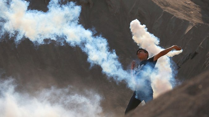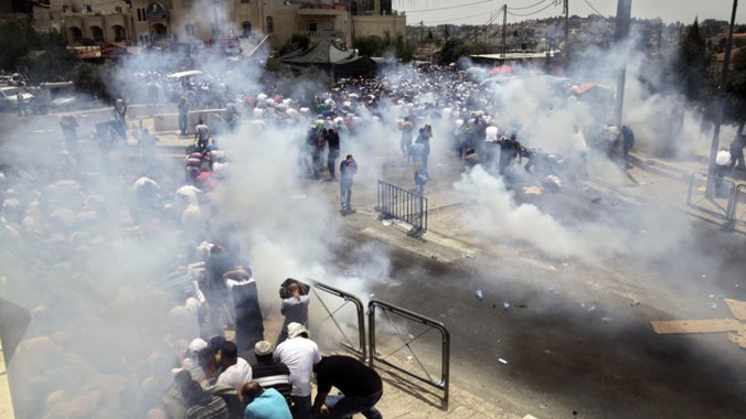 Navodi se da je policija bacala šok-bombe kako bi rasterala demonstrante okupljene u kvartu Ras al Amud, u istočnom delu grada, a kamera je zabeležila scenu kada policijac šutira čoveka koji kleči na prostirci.