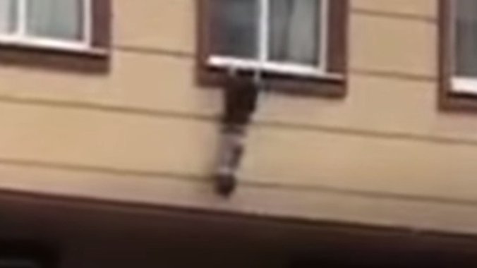 Dete je pokušalo da se popne nazad u sobu, ali nije uspelo, pustilo se i palo pravo u ćebe. Na sreću dečak je prošao bez povreda.