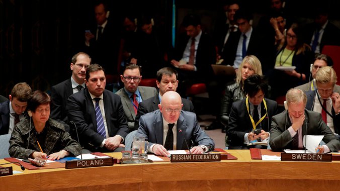 Ruski ambasador u UN Vasilij Nebenzja izjavio je danas na vanrednom sastanku Saveta bezbednosti UN da su SAD, Francuska i Britanija samo zainteresovane za svrgavanje vlade sirijskog predsednika Bašara el Asada i, kako je kazao, obuzdavanje Rusije.