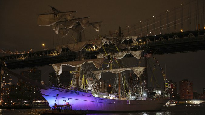 Earlier tonight, the Mexican Navy tall ship Cuauhtémoc lost power and crashed into the Brooklyn Bridge.