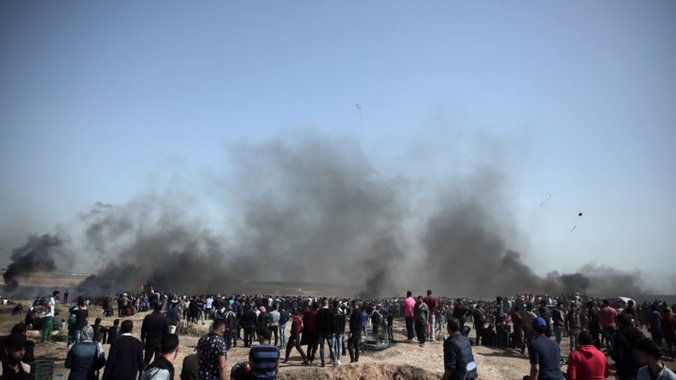 Na mestu sukoba vije se gust dim od zapaljenih guma, dok su Palestinci bacali kamenice na izraelske vojnike koji su odgovorili suzavcem, prenosi AP.