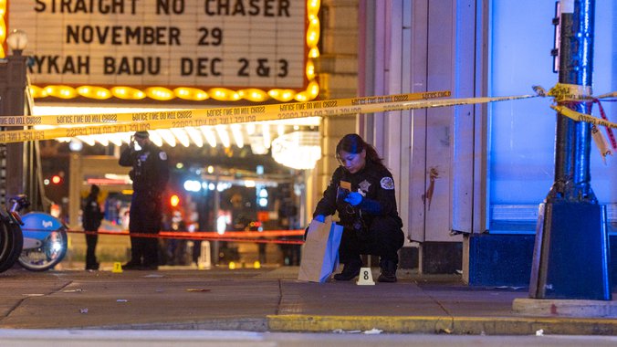 Sedam tinejdžera je povređeno u prvoj pucnjavi, koja se, prema policijskim informacijama, dogodila u blizini Čikaškog pozorišta oko 21.50 časova po lokalnom vremenu, prenosi CBS.