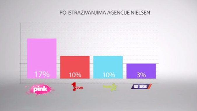 Televizija Pink je i ove srede bila najgledanija komericijalna televizija u Srbiji. Posebno među ženama tokom čitavog dana, ali i u prime-time terminimu, kada je bila gledanija i od Javnog servisa, govore zvanična istraživanja agencije Nielsen Audience Measurement.