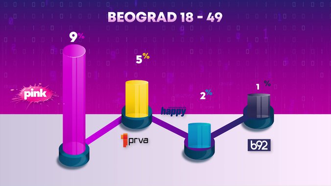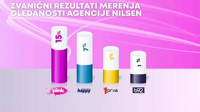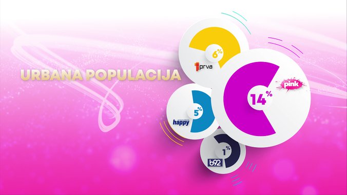 Televizija Pink je od svih komercijalnih emitera bila gledanija u totalu, među gledaocima starosti od 18 do 49 godina, među ženskom publikom starosti od 18 do 49 godina, među gledaocima sa teritorije Beograda, među gledaocima iz prestonice starosti od 18 do 49 godina i među urbanom populacijom, dok je i od Javnog servisa Srbije bila gledanija među ženskom publikom.