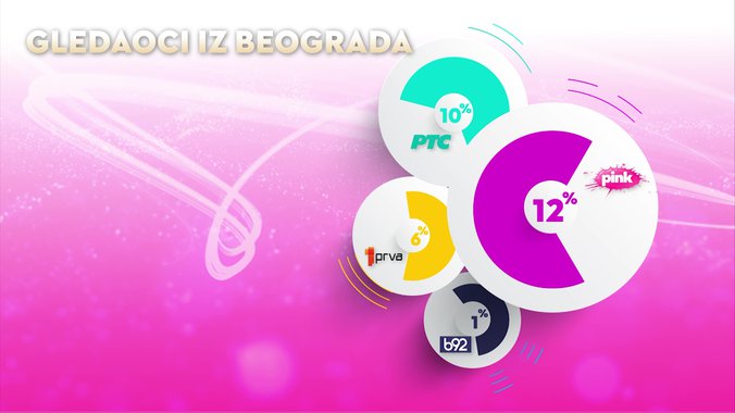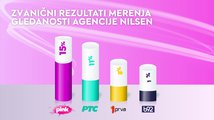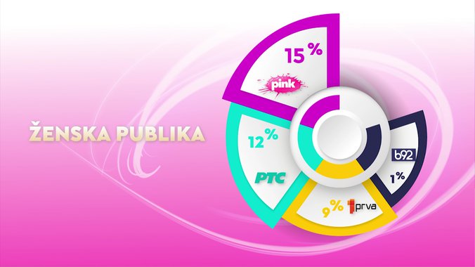 Televizija Pink je od svih komercijalnih emitera, ali i Javnog servisa Srbije bila gledanija u totalu, među ženskom publikom, među gledaocima sa teritorije Beograda i među gledaocima iz prestonice starosti od 18 do 49 godina, dok je od svih komercijalnih televizija bila gledanija među gledaocima starosti od 18 do 49 godina, među ženskom publikom starosti od 18 do 49 godinakao i među urbanom populacijom.