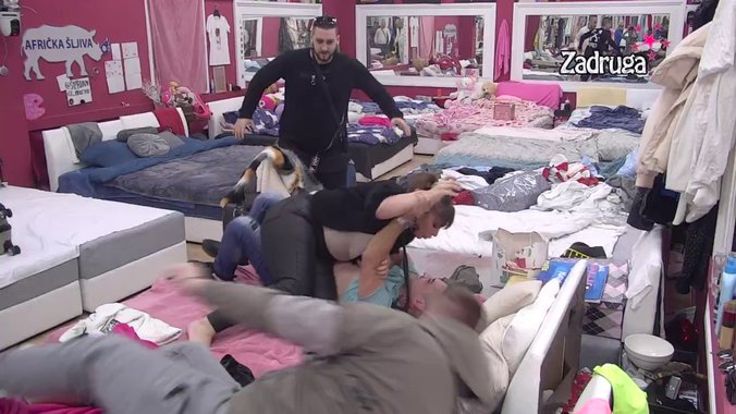 Nakon što ju je Nenad Macanović Bebica polio vodom, Miljana Kulić se zaletela na njega i skočila u spavaćoj sobi. Obezbeđenje je iste sekunde uletelo u kuću, kako bi sprečilo fizički obračun.