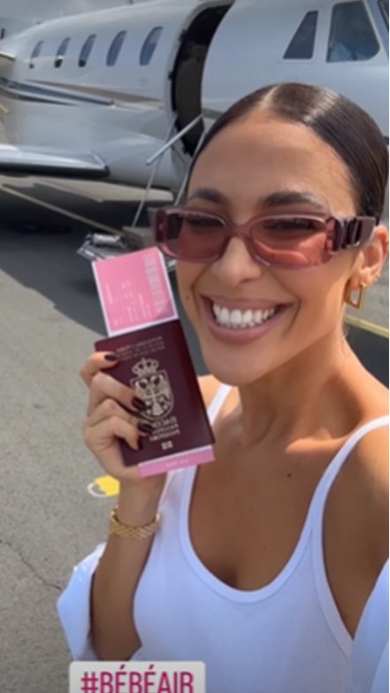 Razlog putovanja je promocija nove kolekcije kupaćih kostima Dunjinog brenda, pa su tako svi detalji u avionu bili sa njenim logom i u pink tonovima.