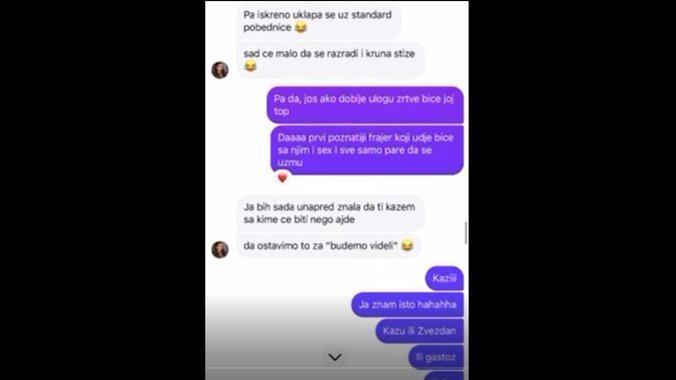 - Pa da, još ako dobije ulogu žrtve biće joj top. Da, prvi poznatiji frajer koji uđe biće sa njim i s*ks i sve samo pare da se uzmu - dodao je Ivan.