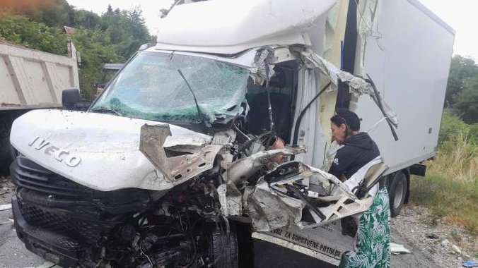 - Prednji deo manjeg vozila je potpuno smrskan, sa vidljivim teškim oštećenjima kabine i motora, što ukazuje na silinu udara. Stakla su razbijena, delovi vozila i otpadni materijal rasuti su po kolovozu, kaže za RINU jedan od očevidaca.