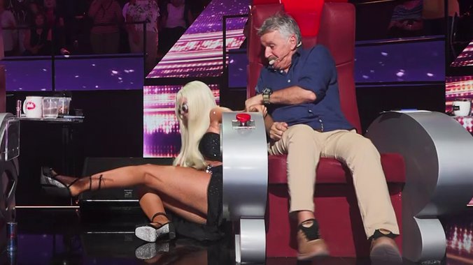 Nakon izvođenja pesme, Žiri se okupio oko Jelene da joj pomognu da ustane.