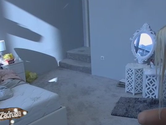 Sanja Stanković ove nedelje boravi u hotelu "Zadruga", a očigledno je da joj veoma prija to što konačno može da se naspava i da ima sopstveni toalet. Ovog jutra ona je bila posebno razdragana pa je skočila na krevet i počela da igra, a nedugo nakon toga usledilo je presvlačenje prilikom koga je otkrila sve svoje atribute.