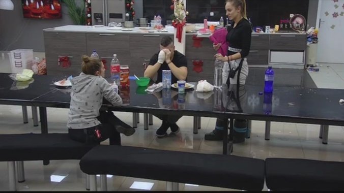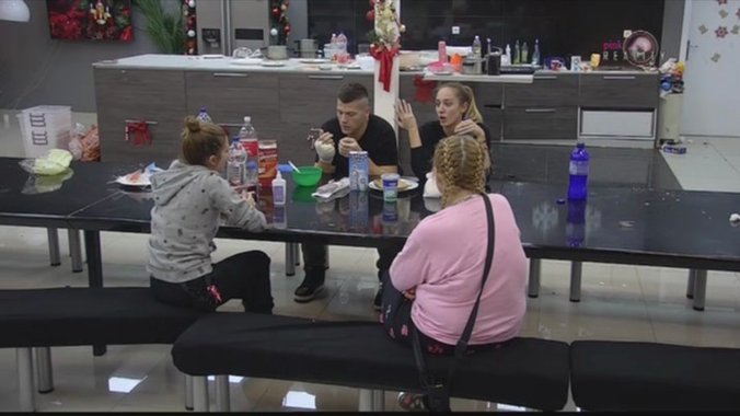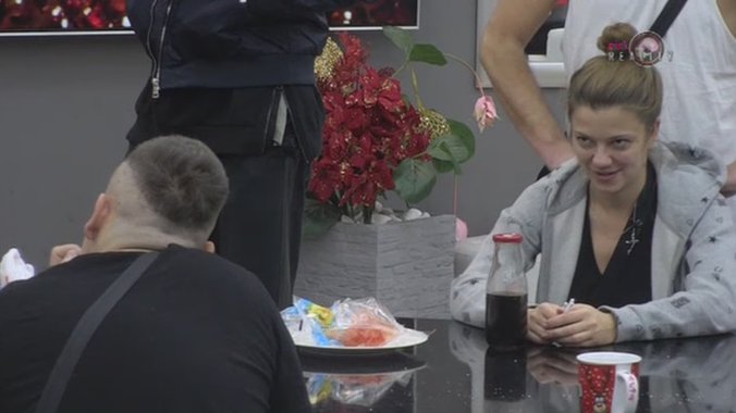 Ove zadrugarke komentarisale su u društvu Dragice Janjičić momke, ali i odnos stjuardese i blogerke. U jednom trenutku pridružio im se i Sloba Radanović, koga je njegova još uvek zakonita supruga Kristina Kockar, pokušala da ga udalji od stola.