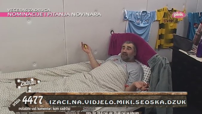 Ti si otišla sa njim u kupatilo, da se čuju zvuci, da se drmaju kamere. Ja pitam Fiću nasamo, a on se smeje. Ti nikad nisi bila ovako zbunjena, a ne možeš da dokažeš zato što je istina! To sa Slobodanom je sve fejk, bre! Čekaj bre ženo, ti si kontradiktorna! Imaš dečka napolju, zaljubljena si, pa on da je normalan da se pita šta ti ovde raspravljaš sa Slobom? Nemoj da me praviš budalom, to znam da ti kažem - rekao je Miki.