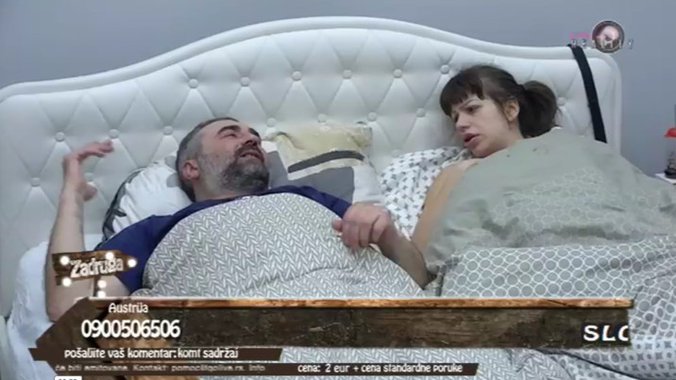 Ova (Sara) samo prevrće očima. Ovaj njen (Vojke) se grebe za cigare od početka rijalitija. Samo hranu kupuju i samo se boje da će biti gladni. U hranu joj ne diraj, tu je jako zaje*ana, non-stop je gladna - rekao je Miki.