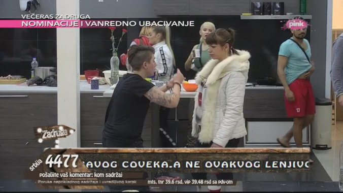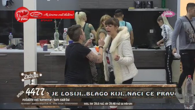 Po završetku sastanka na kome su zadrugari birali najbezobrazniju osobu među njima, došlo je do svađe između Miljane Kulić i Jovane Tomić Matore. Ova stanarka zamerila je trudnici što sve ono što pričaju u četiri oka, kasnije iznese na sastancima, kao i zbog onoga što je Miljana iznela na sastanku.
